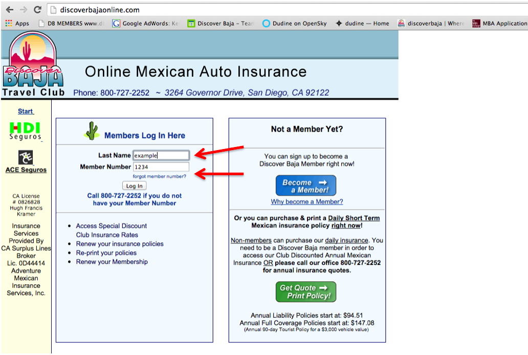 Discover Baja Mexican auto insurance 1 « How to Log Into your Discover Baja Account to Print your Mexican Auto Insurance Policy Leave a Reply Cancel replyYour email address will not be published. Required fields are marked *Comment * Name * Email * Website